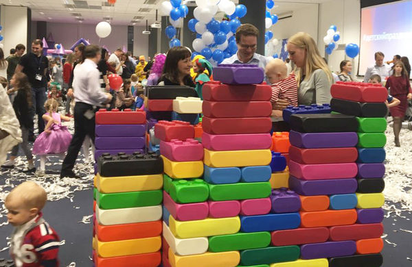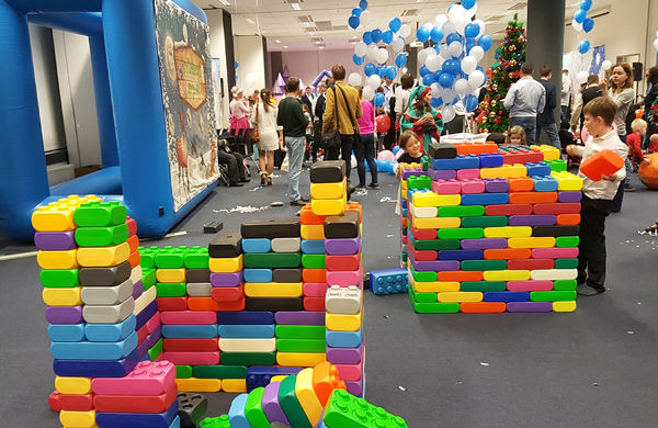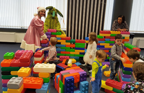 Но одним из самых оригинальных аттракционов оказался гигантский конструктор Мега Лего Киндер-город - малыши с радостью строили фантастические дома и башни, мосты и тоннели, а самое главное Дом Деда Мороза!